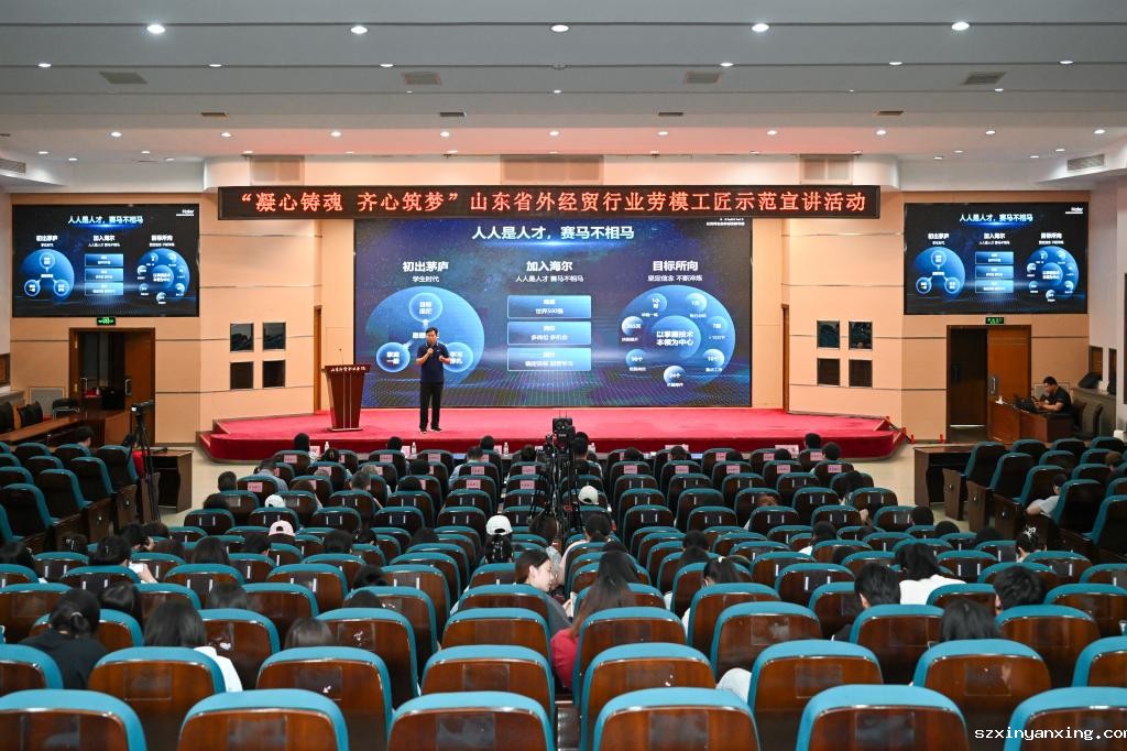 为深入学习习近平新时代中国特色社会主义思想和党的二十届三中全会精神,大力弘扬劳模精神、劳动精神、工匠精神,6月19日下午,我院举办了“凝心铸魂 齐心筑梦”全省外经贸行业劳模工匠进校园示范宣讲活动,党委副书记、工会主席黄维,工会副主席江文军以及全院师生共300余人参加了活动。